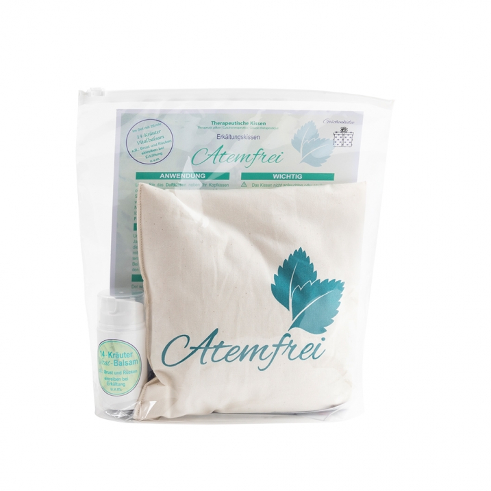 Erkältungskissen ATEMFREI mit Salbei & Minze in Schweizer Schafschurwolle, im SET mit 50ml 14-Kräuter-Vitalbalsam