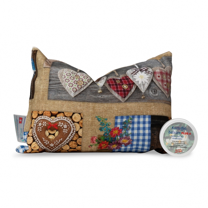 g'sunde Schlafkissen mit Arven-/ Zirbenspäne im Mix mit Schweizer Schafschurwoll-Kügeli, im SET mit 20ml Kartoffel-BalsamPLUS